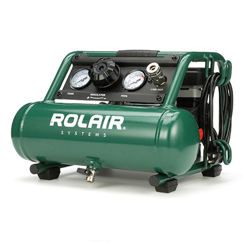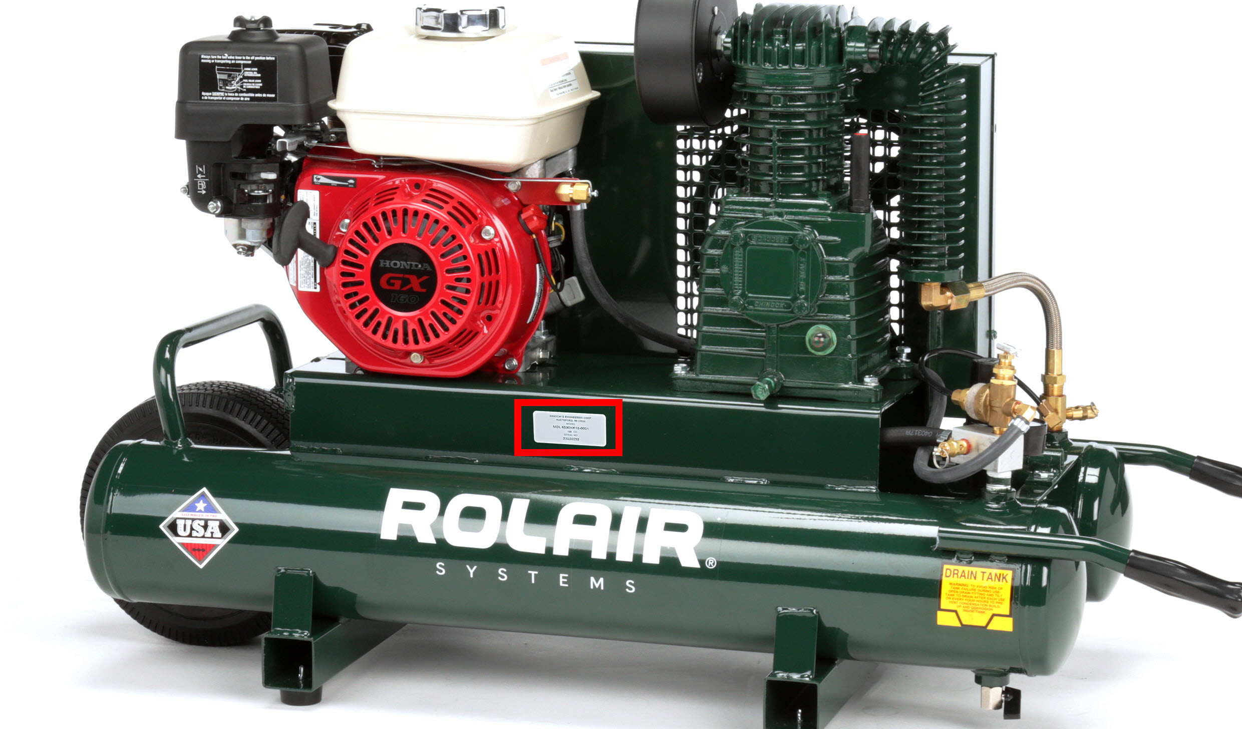 The model and serial number label is located beneath the control manifold and above the ROLAIR logo.